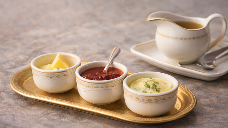 Ramekins, dipping bowls, and condiment sets that keep portions clean and consistent.